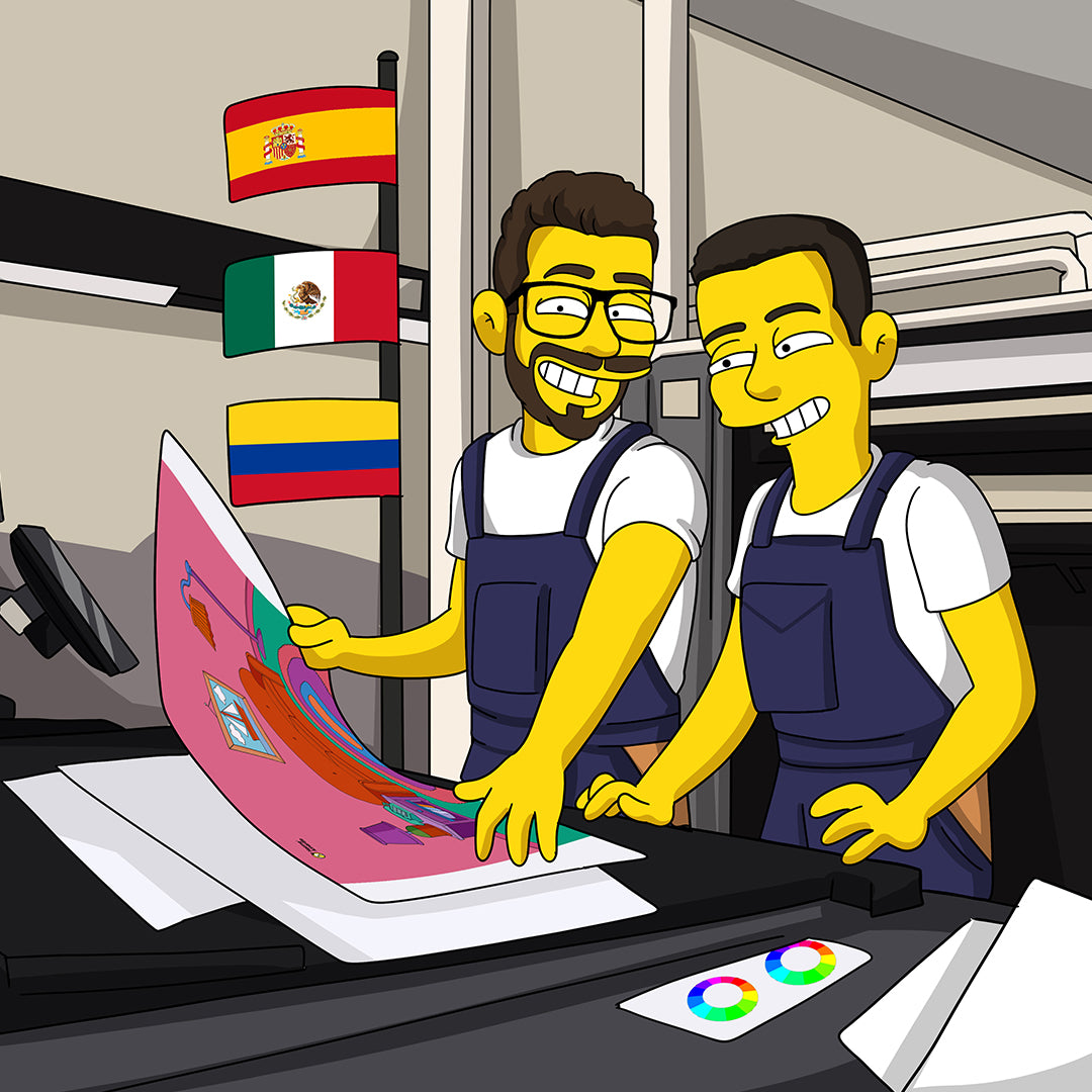 Nosotros tenemos imprentas locales en España, México y Colombia y desde ellas no hacemos envíos físicos internacionales. Si vives en otro país no te preocupes, las caricaturas digitales están disponibles para ser enviadas de forma online a cualquier parte del mundo, y tu puedes imprimirlas en tu imprenta favorita.